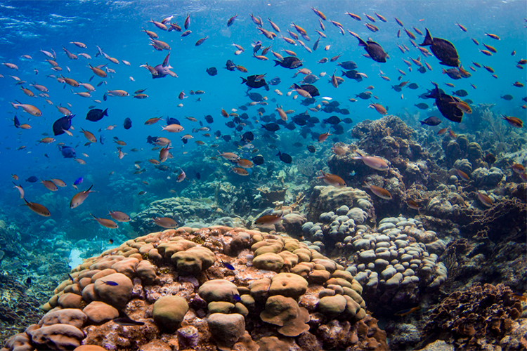 Coral reefs are characterized by high biodiversity and the structures created by invertebrates living in warm, shallow waters within the ocean’s photic zone. They are mostly found within 30 degrees north and south of the equator. The Great Barrier Reef is a well-known reef system located several miles off the northeastern coast of Australia. The coral organisms (members of phylum Cnidaria) are colonies of saltwater polyps that secrete a calcium carbonate skeleton. These calcium-rich skeletons slowly accumulate, forming the underwater reef (Figure 3). Corals found in shallower waters (at a depth of approximately 60 m or about 200 ft) have a mutualistic relationship with photosynthetic unicellular algae. The relationship provides corals with the majority of the nutrition and energy they require. The waters in which these corals live are nutritionally poor; without this mutualism, it would not be possible for large corals to grow. Some corals living in deeper and colder water do not have a mutualistic relationship with algae; these corals attain energy and nutrients using stinging cells on their tentacles to capture prey. It is estimated that more than 4,000 fish species inhabit coral reefs. These fishes can feed on coral, other invertebrates, or the seaweed and algae that are associated with the coral.